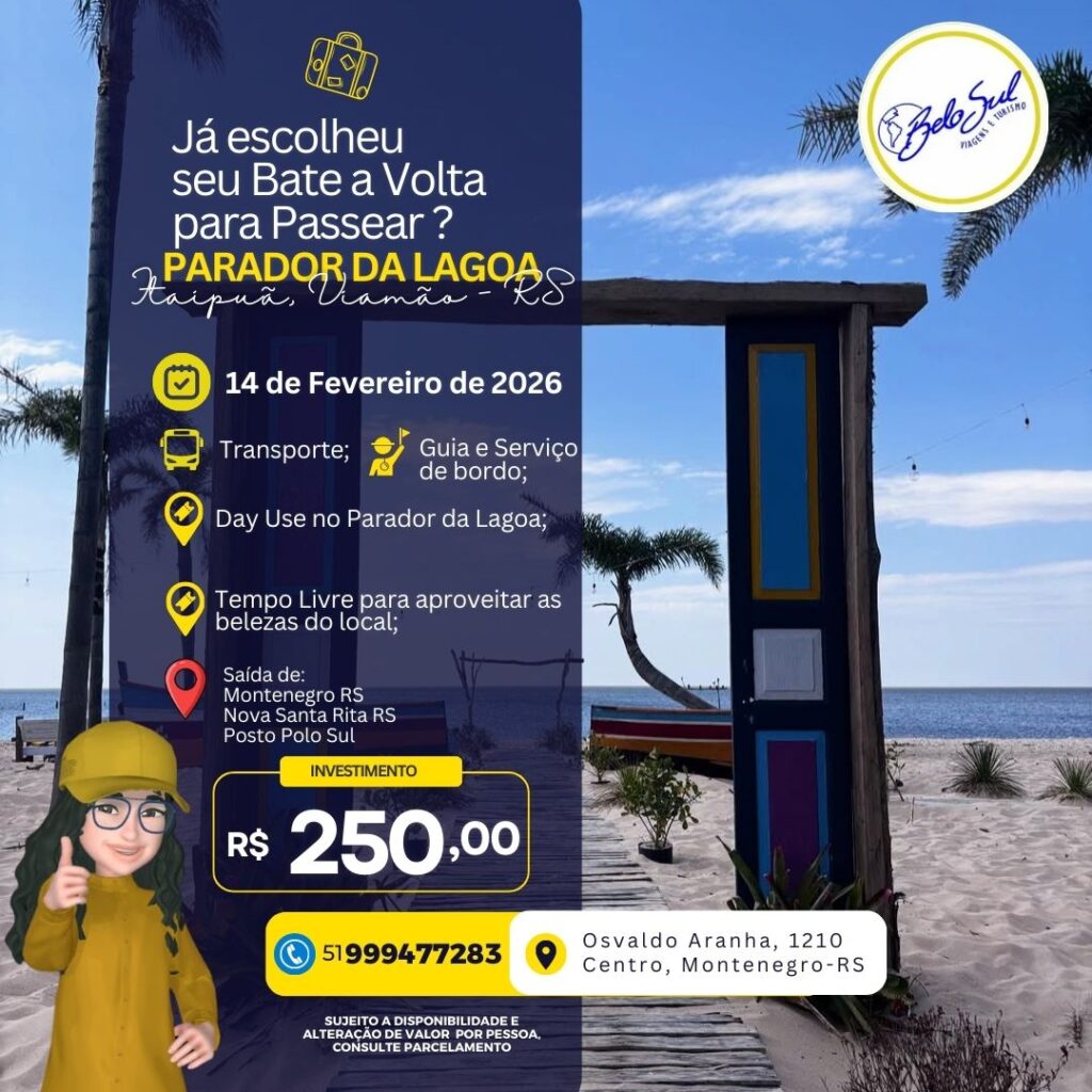 Investimento: RS 250,00 por pessoa.